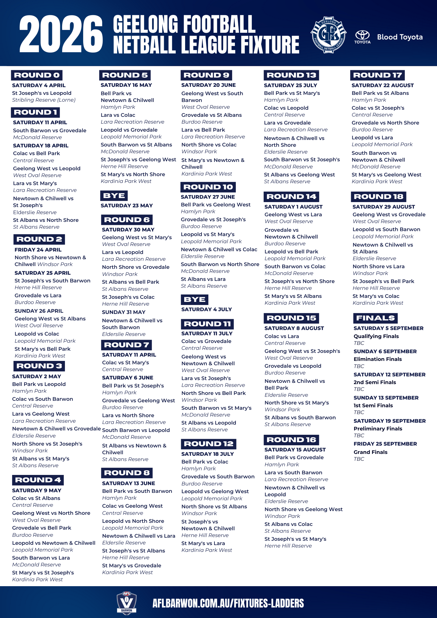 The updated version of the 2026 Blood Toyota Geelong FNL Fixture can be found below.